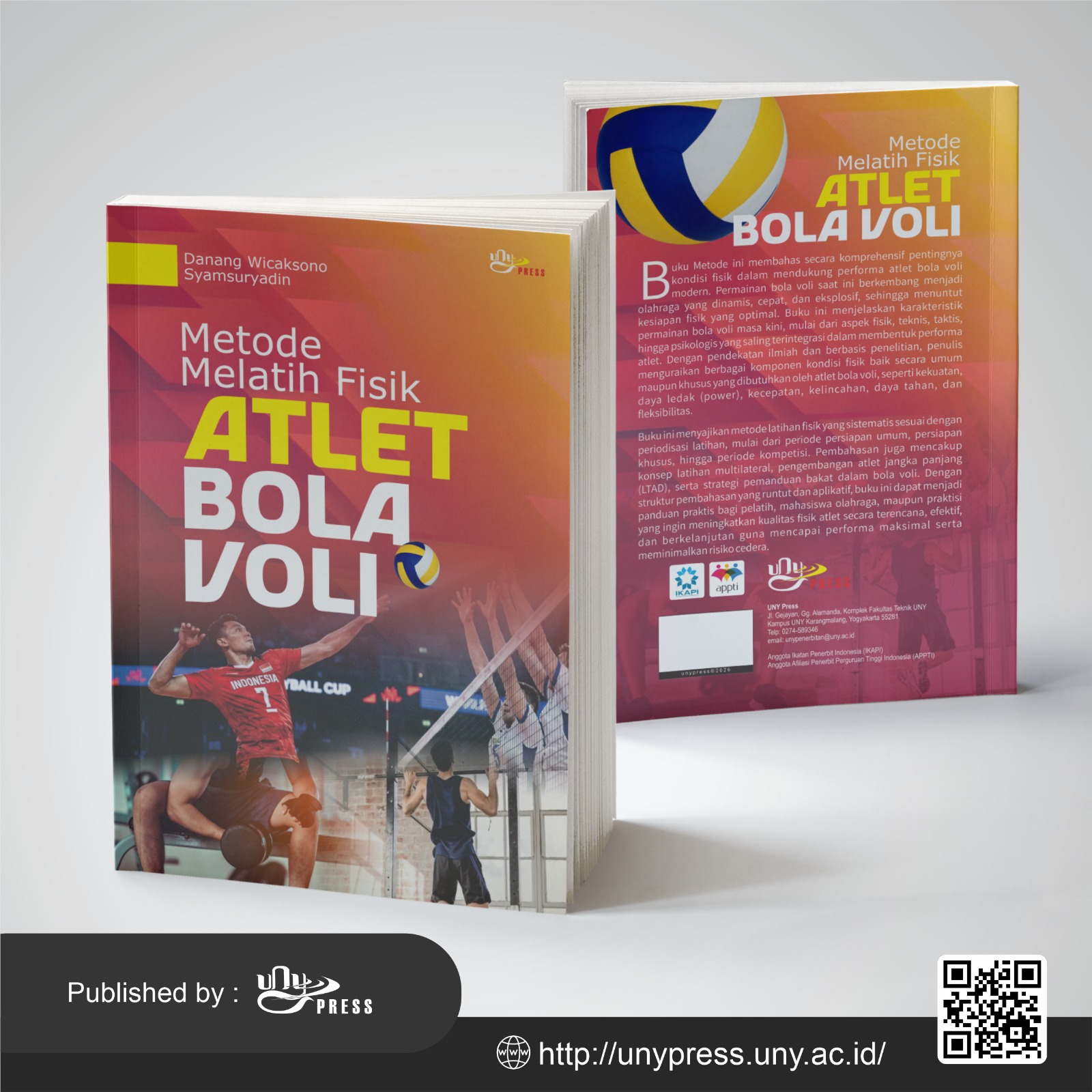Permainan bola voli saat ini berkembang menjadi permainan yang sangat atraktif. Adu smas, adu servis, adu blok hampir selalu tersaji, sehingga selama jalannya pertandingan seakan tidak hentinya membuat detak kagum para penontonnya. Adegan tersebut dilakukan dengan dukungan fisik yang prima. Kondisi fisik yang prima sangat dibutuhkan oleh seorang atlet untuk dapat menampilkan performance dalam pertandingan dengan seoptimal mungkin. Permasalahan kualitas kondisi fisik menjadi sangat krusial untuk atlet bola voli. Permainan bola voli yang sarat dengan permainan cepat, eksplosif power, dan dapat bertahan hingga lima set tanpa mengalami penurunan performa, untuk itu kualitas fisik yang prima sangat dibutuhkan oleh atlet bola voli. Buku metode melatih fisik atlet bola voli ini memberikan landasan yang kuat untuk menyiapkan atlet agar memiliki keunggulan dari segi fisik. Buku ini dapat menjadi panduan siapapun yang akan meningkatkan kualitas fisiknya untuk mendukung performanya dalam pertandingan bolavoli.